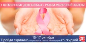 Ежегодно, 15 октября, в 44 странах мира проводится Всемирный день борьбы с раком молочной железы, который был объявлен Всемирной организацией здравоохранения (ВОЗ) в 1993 году.